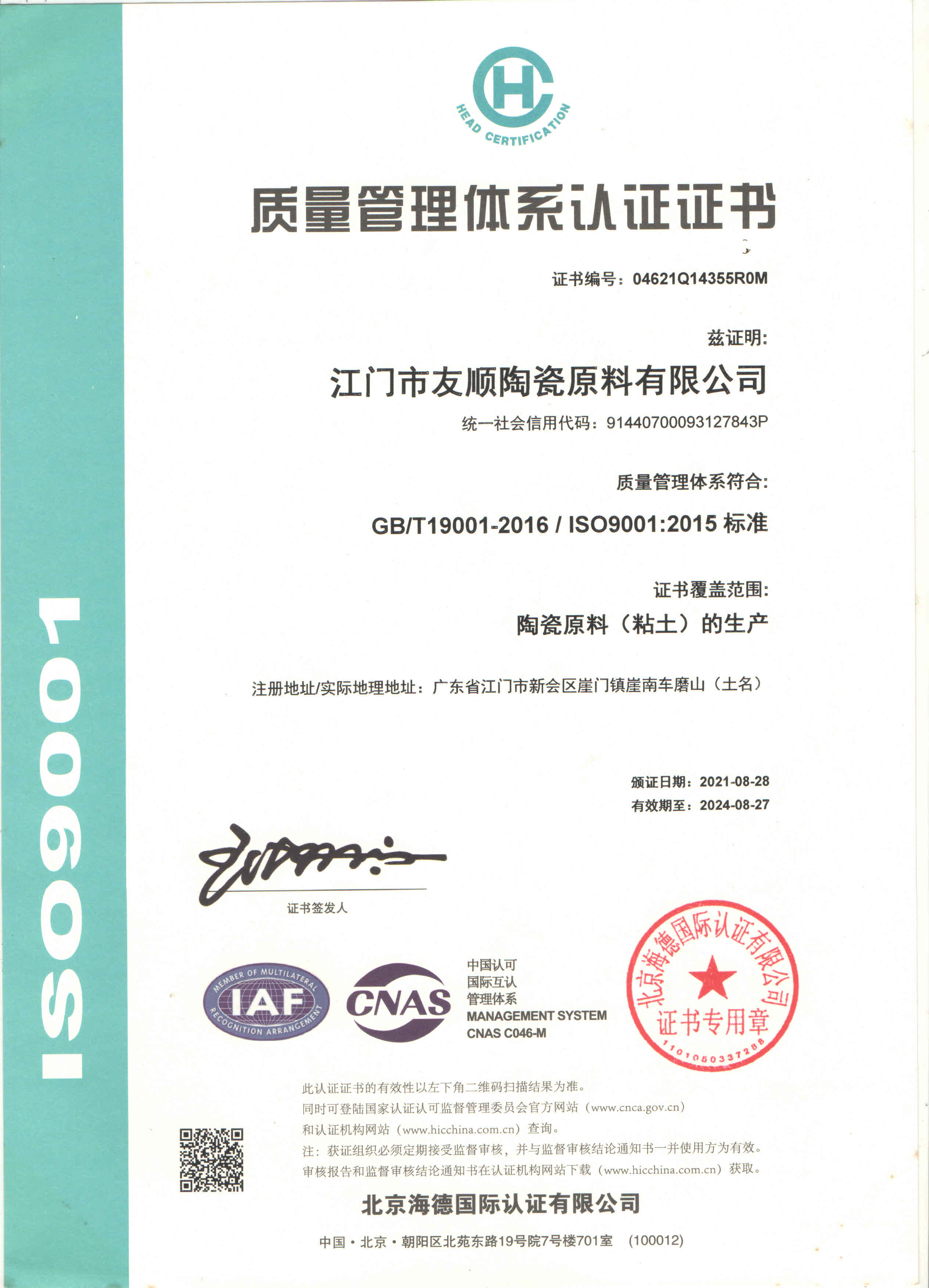 “用心为客户提供品质稳定的产品以及优质的服务”是友顺人时刻追求的宗旨与坚守不变的承诺。通过规模化分类堆存、科学的配方组成、精益化的生产流程、细致的检测品控、敏锐的市场反馈、精准的市场定位,为客户提供优质、稳定、标准的陶瓷原料,为客户提供更高的附加值为已任,以与客户共赢为发展目标。